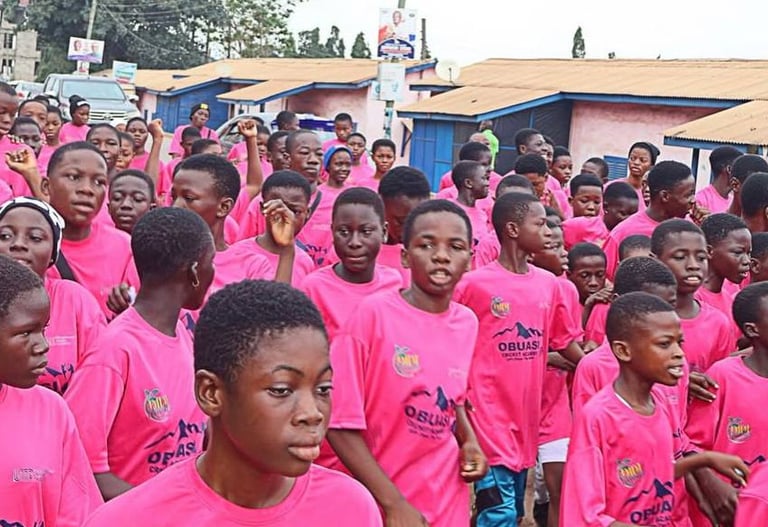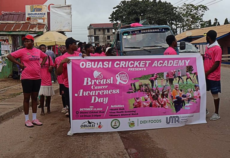 Obuasi, Ghana — November 2024 — DiDi GREENS, a Ghana-based NGO restoring degraded and illegally mined lands in Obuasi, partnered with the Obuasi Cricket Academy (OCA) and DiDi Foods to deliver a two-part community program: the “Plant a Tree for Your Future” Junior Cricket Tournament and a “Break Cancer” Awareness Day focused on prevention and early detection.
