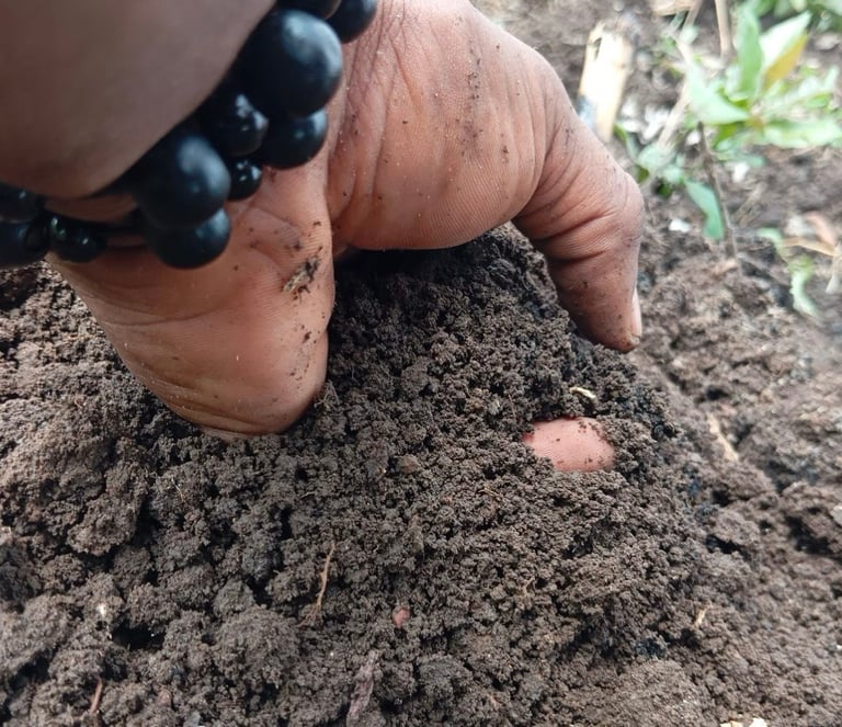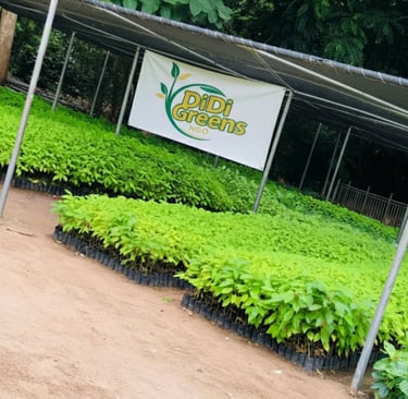 DiDi Greens turns local organic waste into soil life using Black Soldier Fly (BSF) bioconversion. Farm residues and food scraps feed BSF larvae, which produce two outputs: protein for poultry and fish, and a fine, nutrient-rich frass. Applied on clean, raised berms and covered with mulch, the frass rebuilds soil structure, lifts organic matter, improves water retention, and re-introduces beneficial microbes so trees and intercrops establish and survive the dry season.