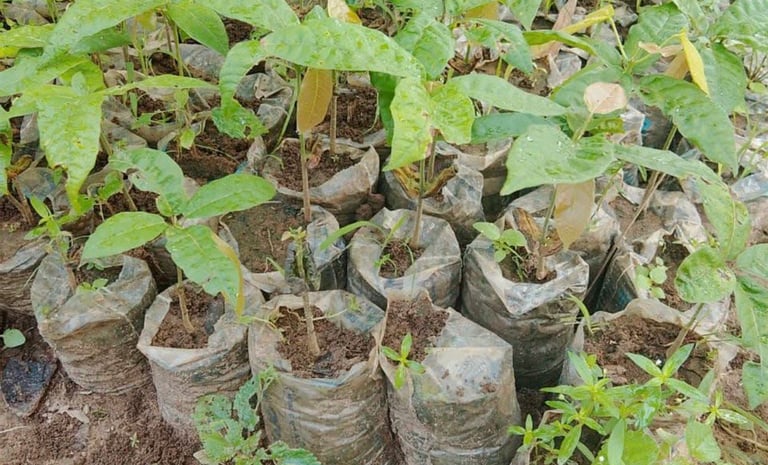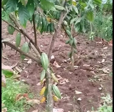 Cocoa farmers using DiDi Greens’ free Black Soldier Fly frass are seeing measurable gains. Between March–August 2025, 340 farmers across 11 communities applied 52 t (≈150 kg/farm) as nursery top-dress and light side-dress at first rains (1.5–2.0 t/ha on treated blocks). Field checks show soil moisture at 10 cm +12% vs. baseline, darker, more friable topsoil, sturdier rootballs, and 28% fewer seedling losses through the dry spell. Early canopy recovery is faster, leaves hold colour longer, and pod set is 15% more even on treated rows.